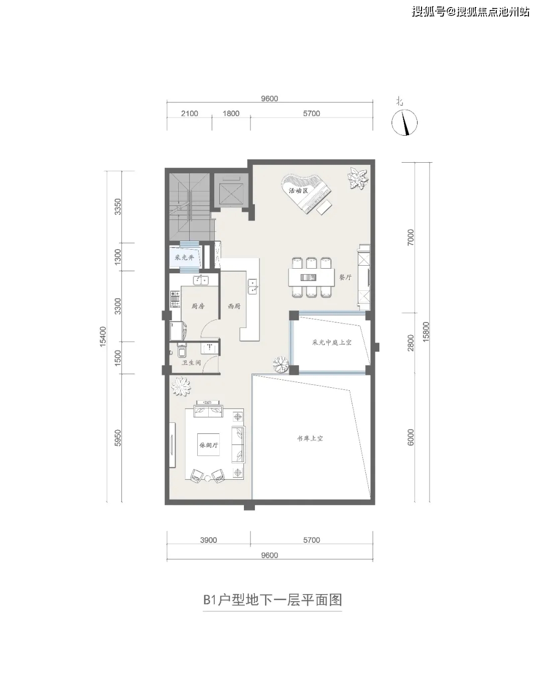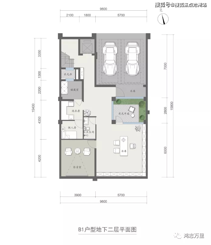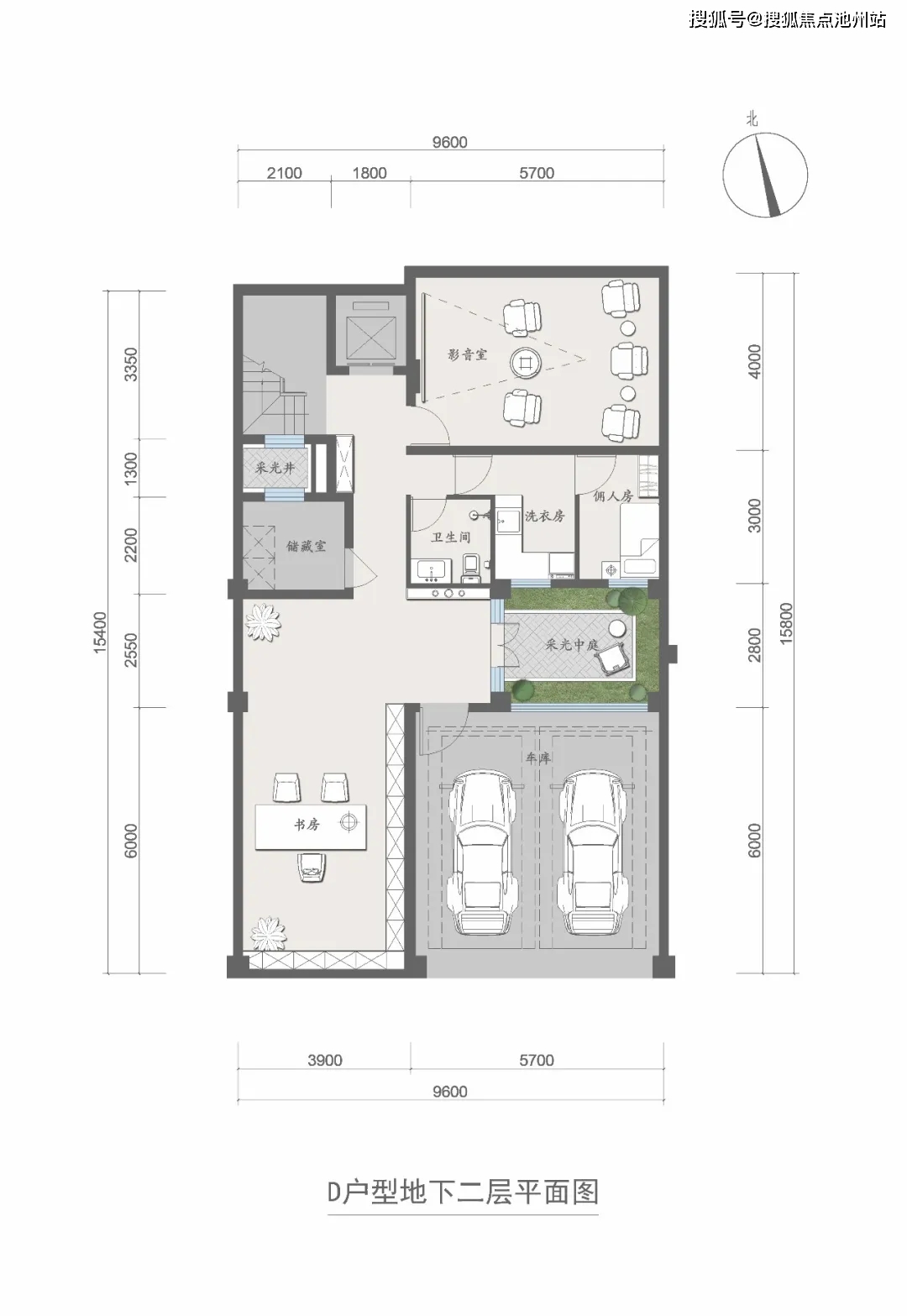 产品层高:地上1层3.6米,地上2层3.3米(坡屋顶部分挑空5.4米),地下1层4.2米,地下2层3.6米