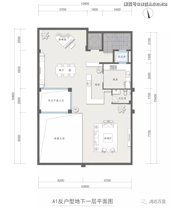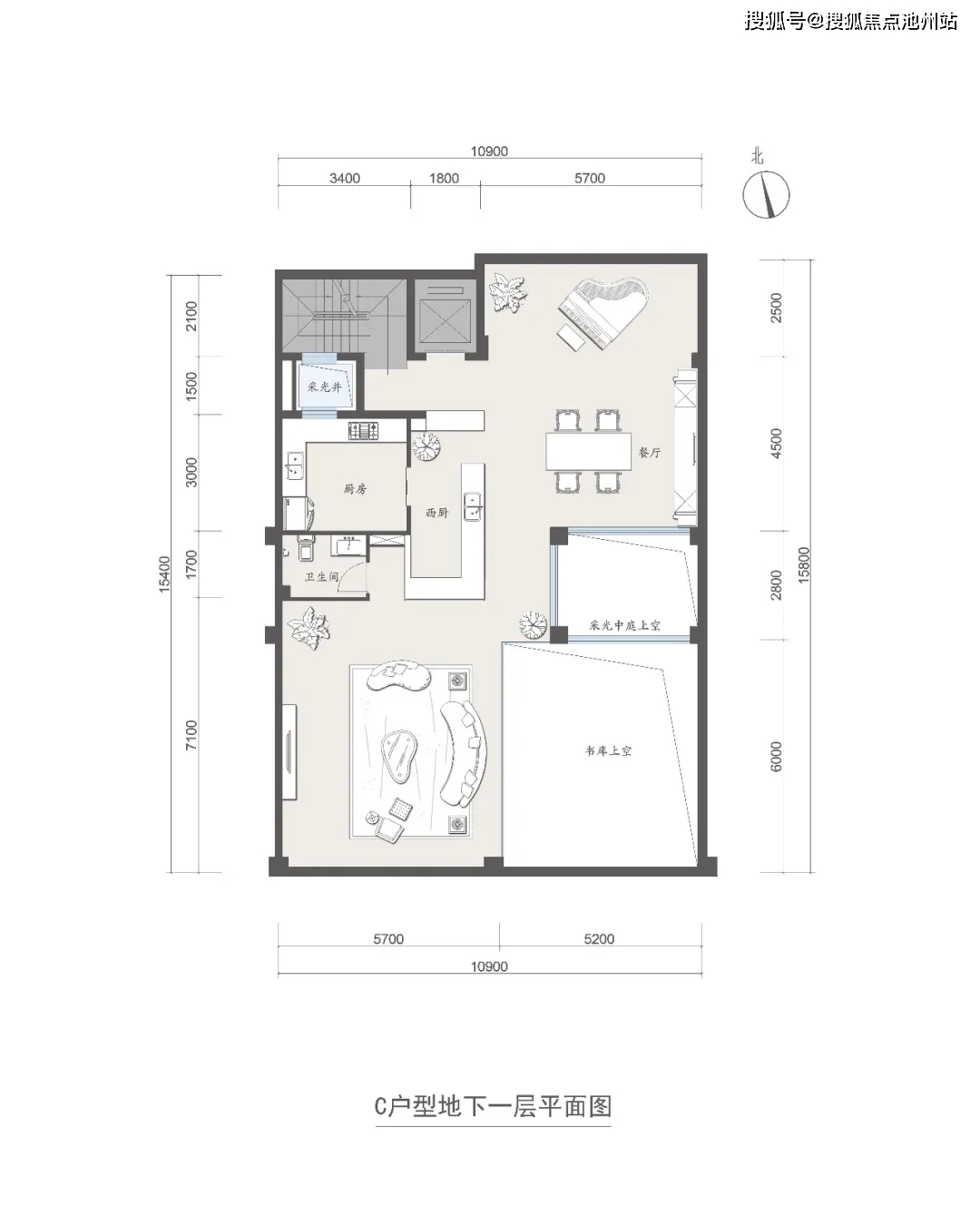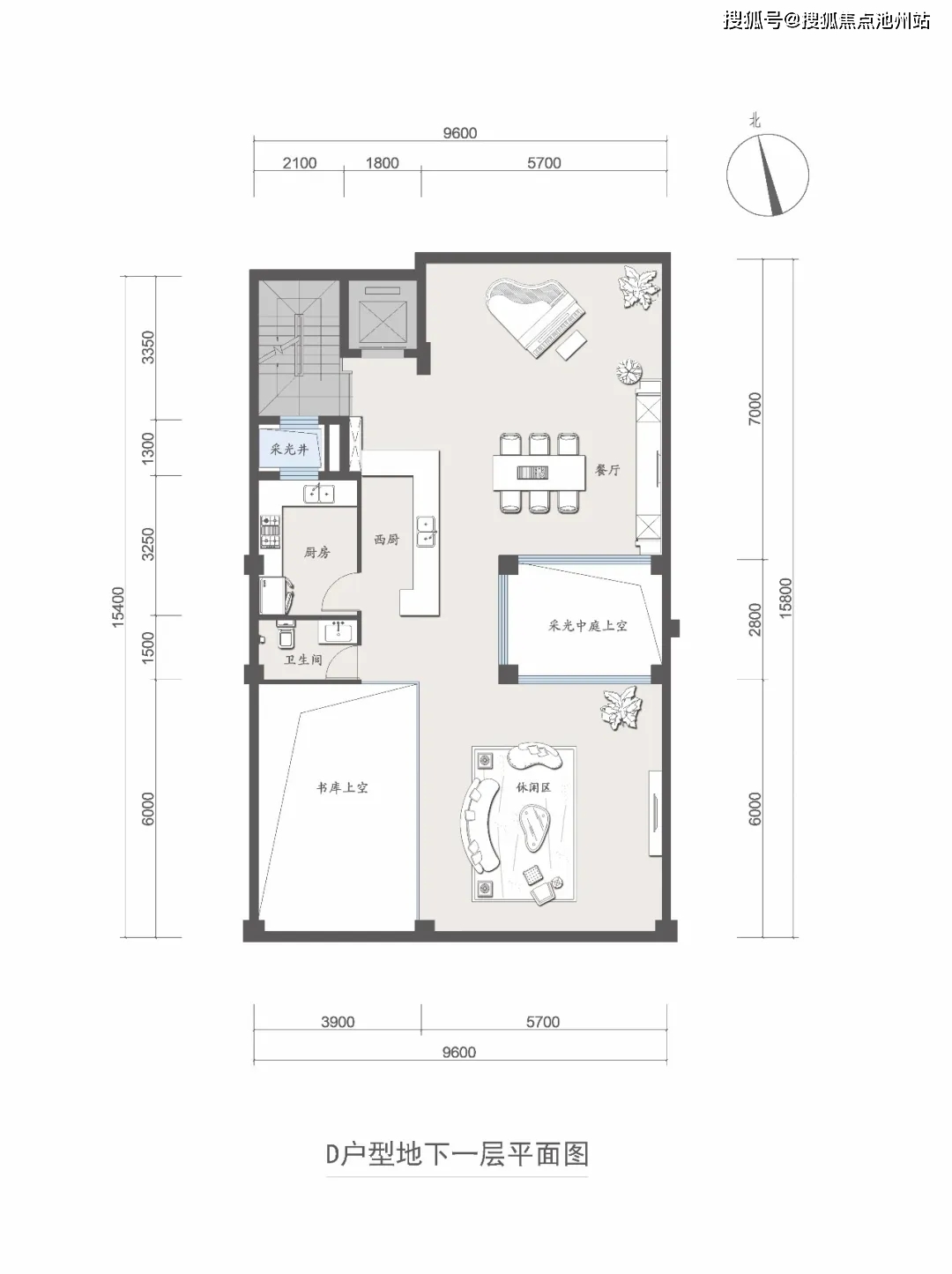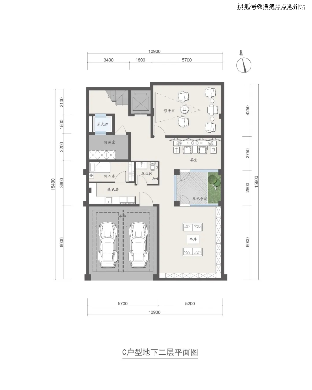 产品层高:地上1层3.6米,地上2层3.3米(坡屋顶部分挑空5.4米),地下1层4.2米,地下2层3.6米