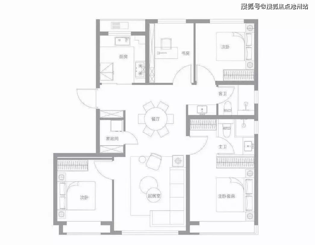 总规划470户商品住宅,户型有114㎡的三居,132㎡、155㎡的四居。按照销售指导价7.1万/㎡计算,总价809万起。