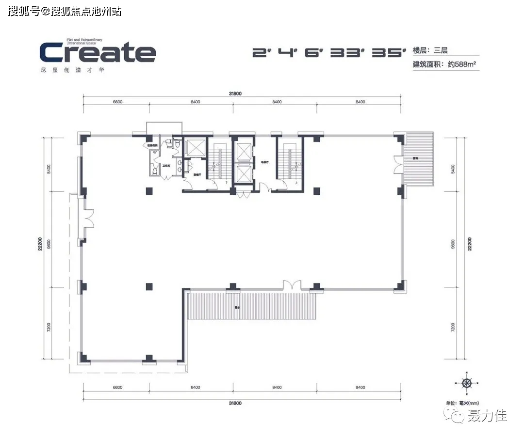 宽厅阔景:约33m大面宽、3.72/4.5m层高、360°全景落地窗