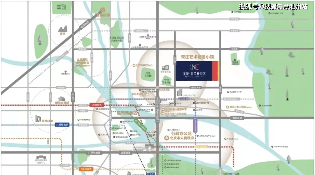 金地北京壹街区位于通州宋庄板块,东六环外,距离东六环外约900米。