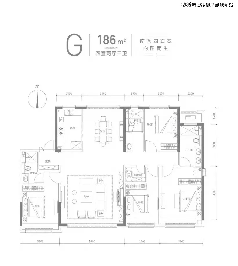 在售户型73㎡、78㎡、85、96、109㎡、125、143、165、186㎡,均价4.5万元/㎡