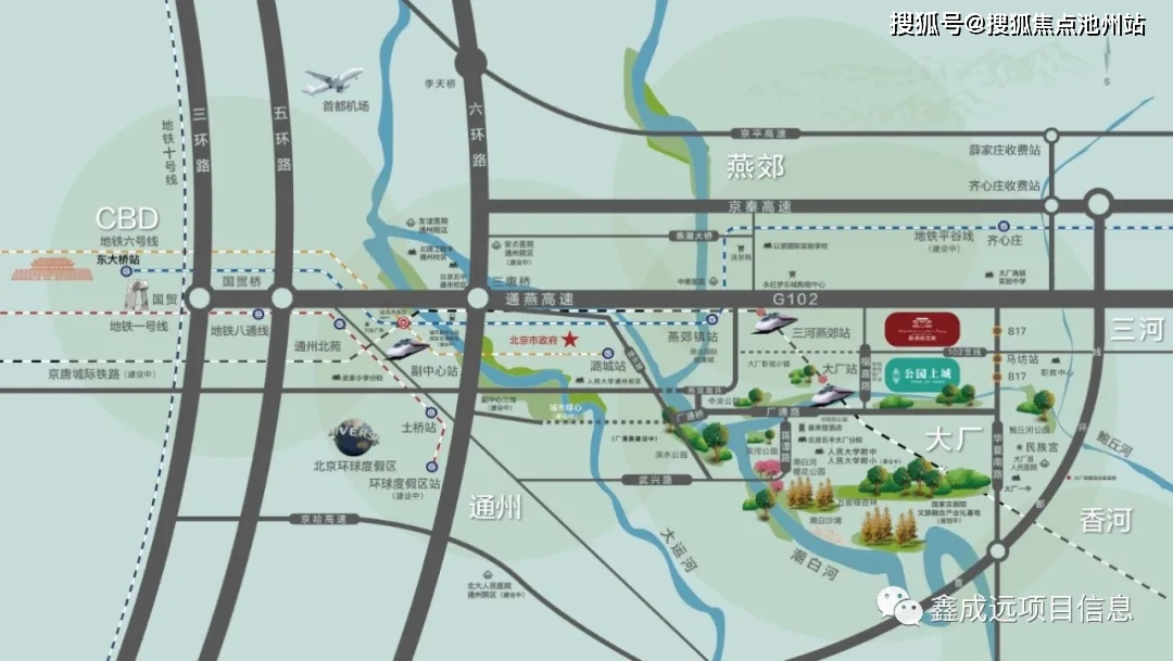 五星级酒店喜来登 ,幸福港湾商业综合体,大厂影视基地,社区连锁便利店,马坊农贸市场
