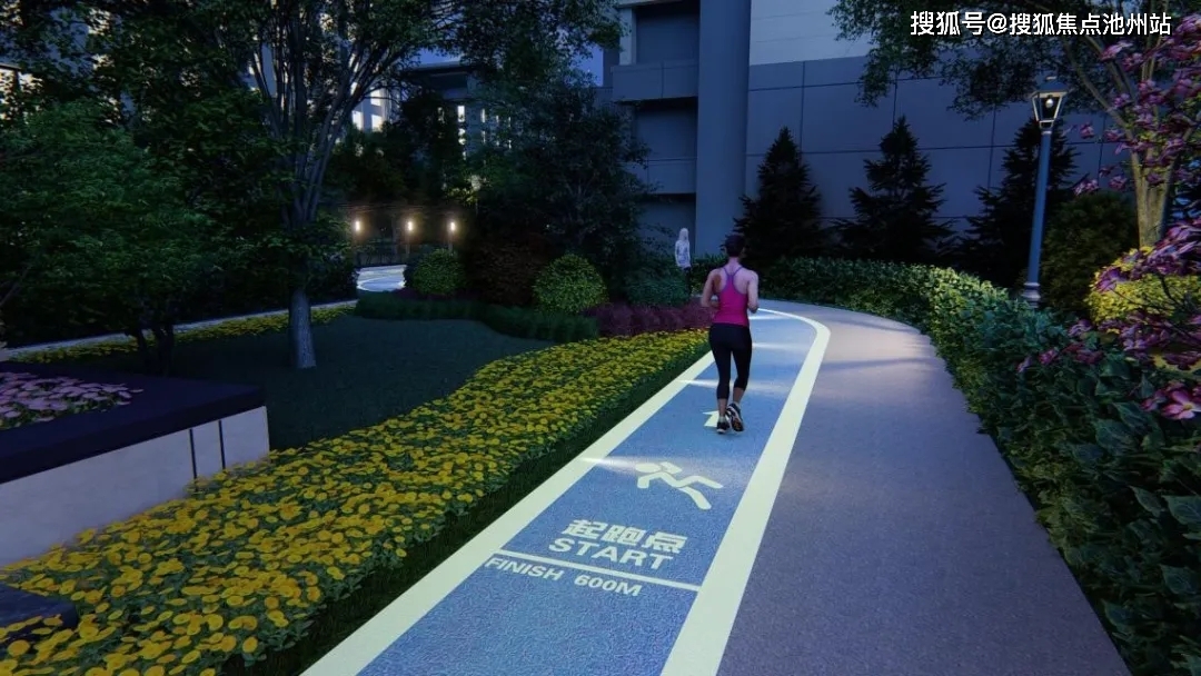 创新打造社区智能夜光跑道,惬意享受有氧健康生活,夜光跑道与园林美景交相辉映,每一次恣意的奔跑都是一次穿越花园的旅行。