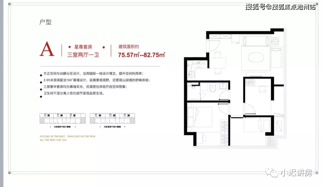 三居室:82㎡(东南、西南)(目前没房) 78㎡(南向)