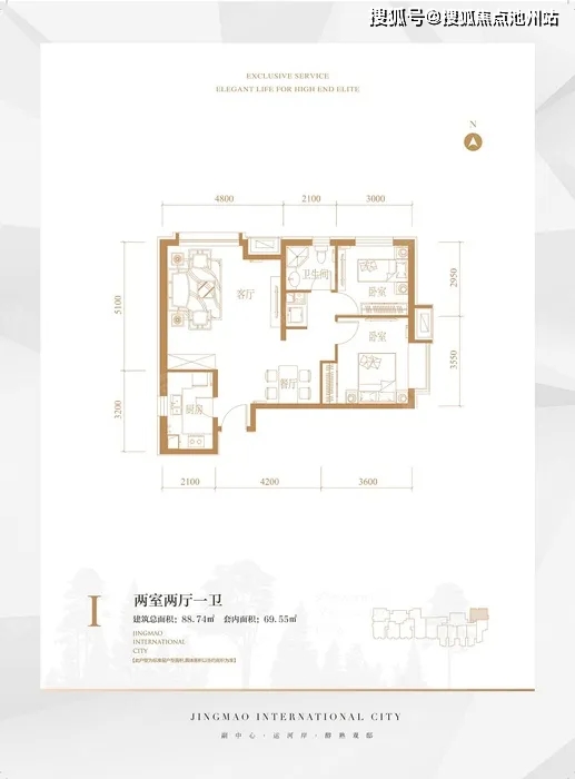 I户型-2室2厅1卫-88.0㎡,户型实用,空间布局合理,利于规划 南向卧室采光充足,整体大气,通透流畅,总价约634万元/套。