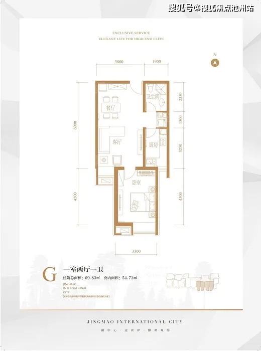 G户型-1室2厅1卫-69.0㎡,户型实用,空间布局合理,利于规划 南向卧室采光充足,整体大气,通透流畅,总价约497万元/套。
