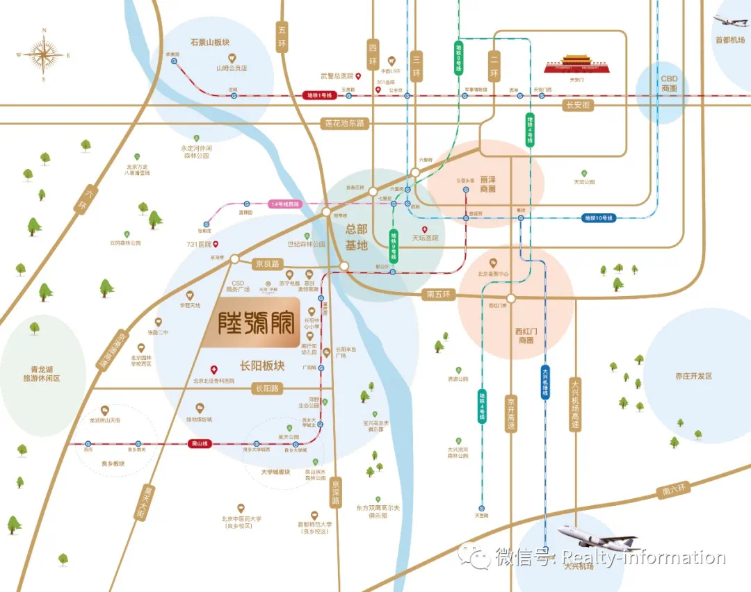 五园:喇叭河公园、长阳公园、万亩滨河公园、免费的市政公园和城市绿地环伺;绿地率及空气质量领衔北京,休闲度假场所丰盛美好生活。