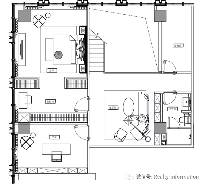 阔绰尺度书房,设置独立卫浴室,揽星光入怀 阳光鲜氧流转于室;