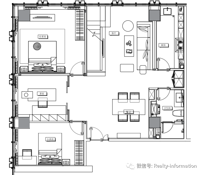 创新双孩房设计,贴心长辈房设置, 24小时照顾家人的健康起居;
