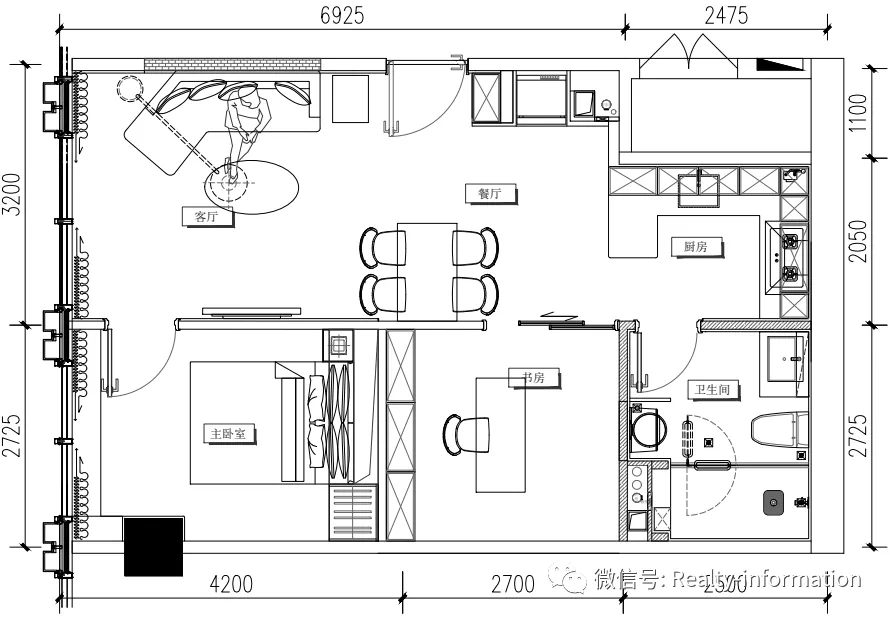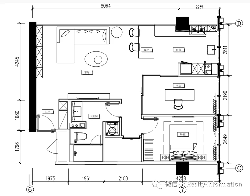 l 客厅+餐厅+厨房三个区域相融,可以让家里亮堂N倍以上。