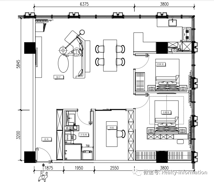2.建面约65平米,西北、东北向双面采光,一居250万起(可定制精装)