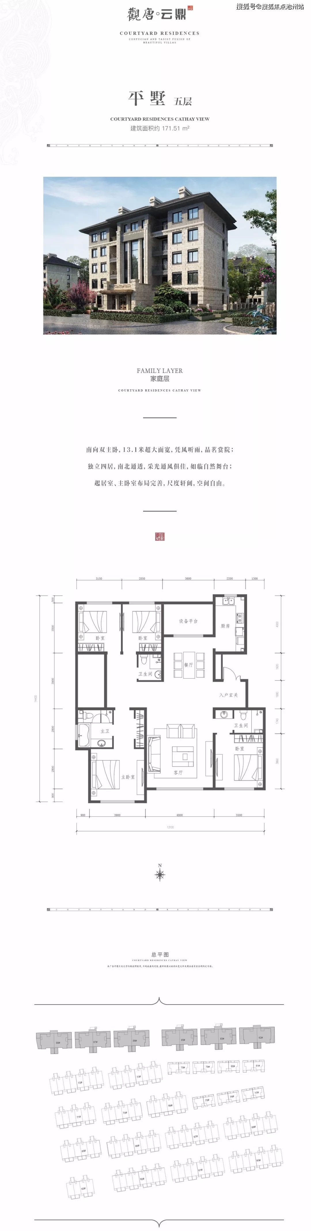 目前建筑面积约139-300㎡新中式别墅在售,上叠户型139㎡,下叠户型184㎡,双拼户型300㎡左右,平墅户型171㎡;