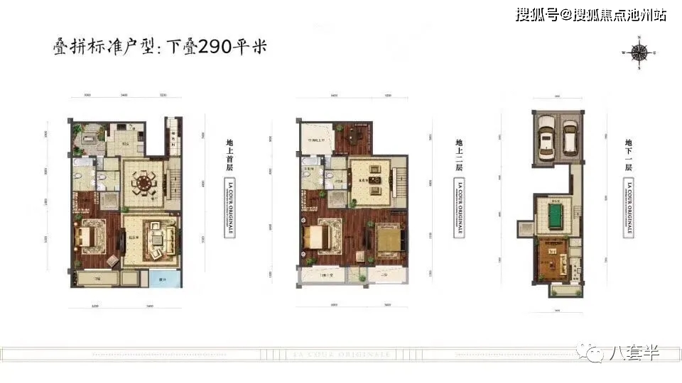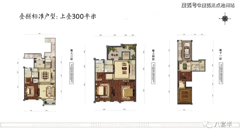 叠拼面积:上叠房本面积在300平米(使用面积在500平米)、下叠房本面积在290平米(使用面积在465平米)