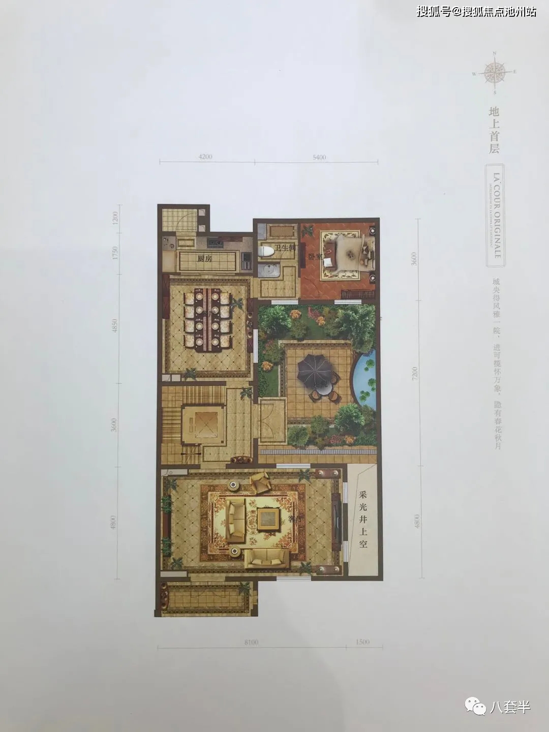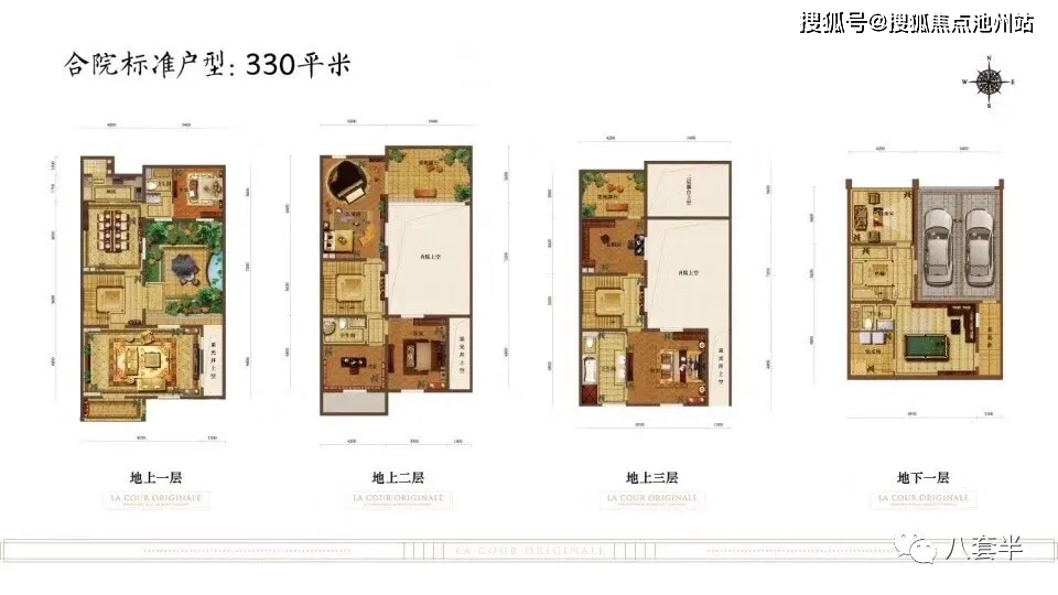 合院面积:合院房本面积在325平米(使用面积在500平米、花园面积40平到90平)