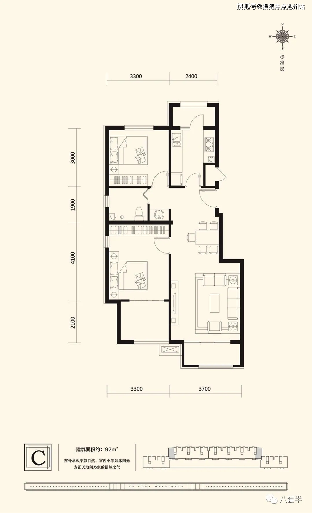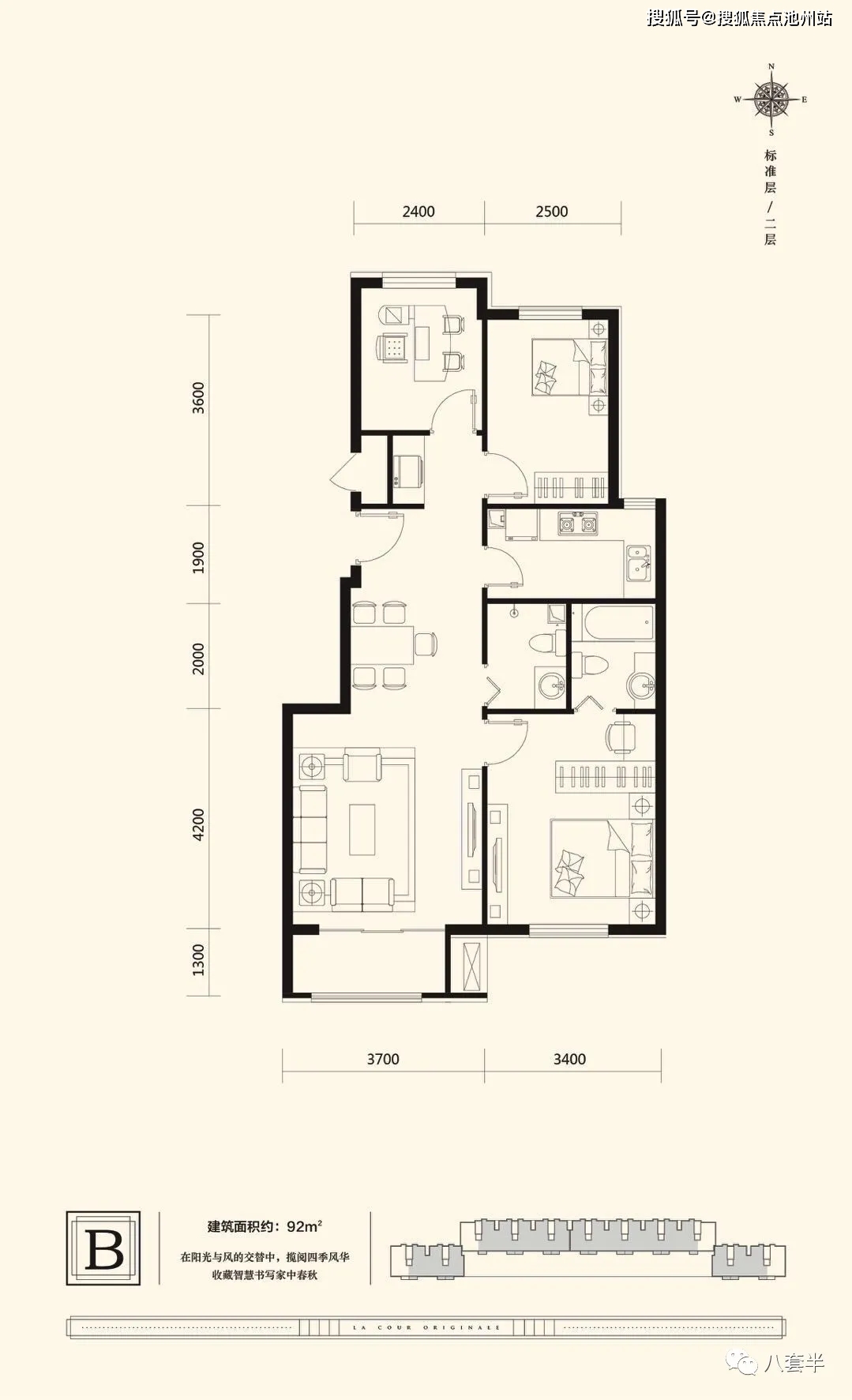 户型面积:93平米