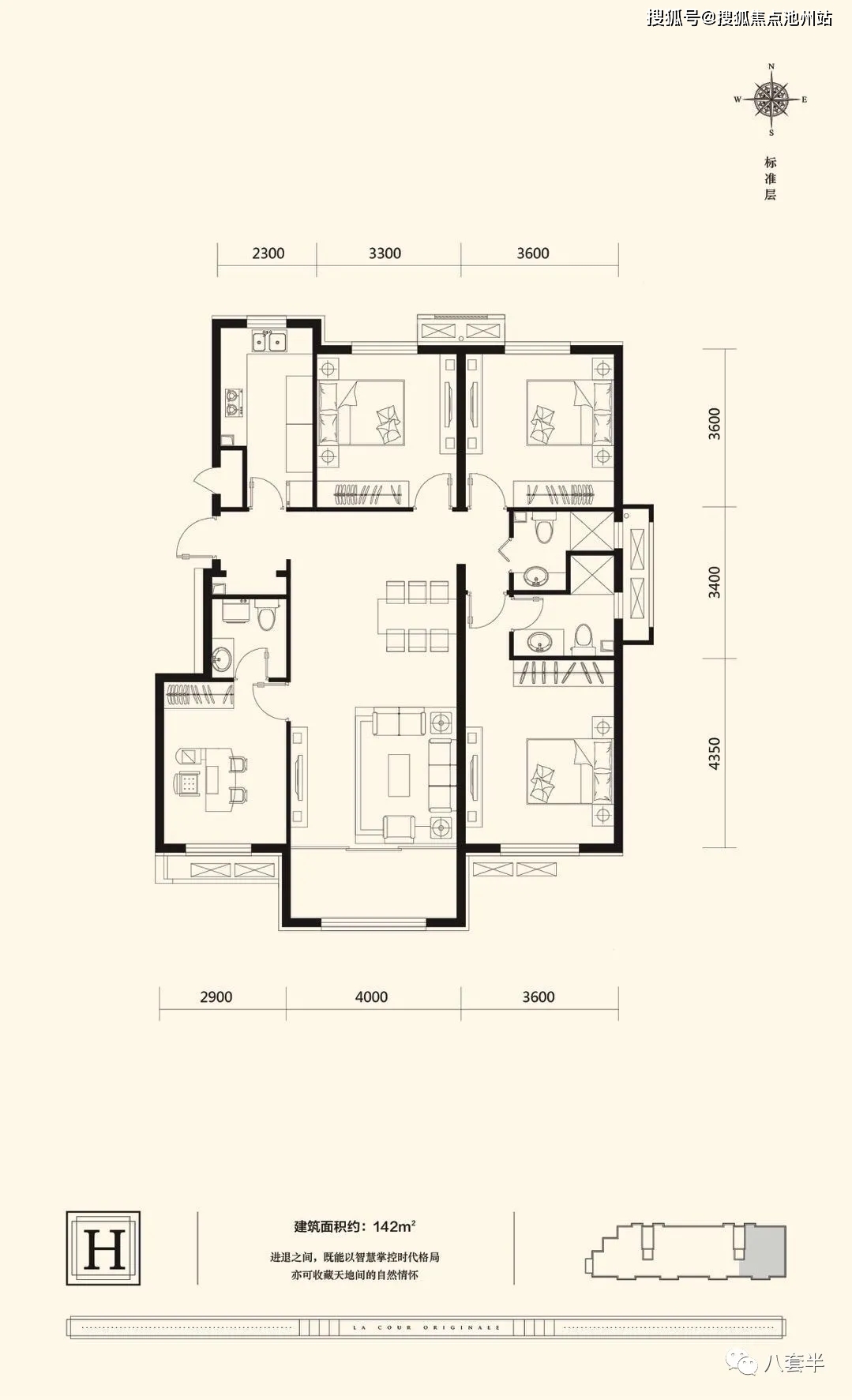 户型格局:四室三厅四卫