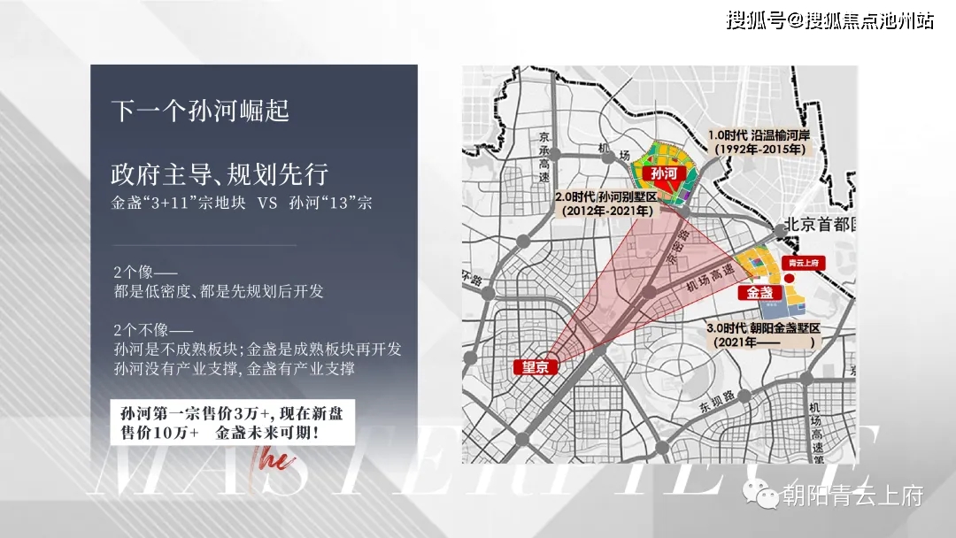 因为特殊的城心位置和天赋生态,朝阳金盏别墅区已经成为继孙河之后,北京下一个政府“先规划后开发”的臻稀低密城市空间。孙河作为金盏的先行者,其价值发展为朝阳金盏别墅区预示了未来。从最初的3万+到如今新盘的10万+,价值翻了三倍有余。