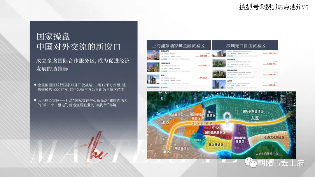 金盏国际合作服务区,地处朝阳黄金十字线上,北接首都机场和望京、西连国贸CBD、东达通州副中心,链接北京最繁华的未来资源。金盏国际合作服务区,聚焦国际综合商务合作的核心功能,搭建促进人才、信息、科技、资金等要素流动的新平台,构建国际科技创新合作、国际金融、商务服务、国际多元文化交流等特色优势,打造北京新型国际化的示范区。