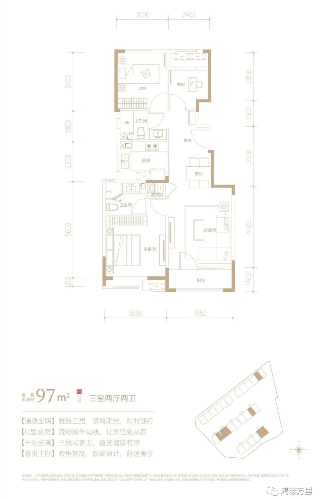 97㎡三居双卫:约410万左右 有样板间116㎡三居双卫: 约488万左右 无样板间132㎡四居双卫:约560万左右 无样板间149㎡四居双卫:约650万左右 有样板间