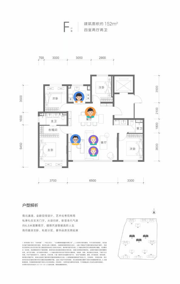 主力户型建面约152平可圈可点之处也很多。总面宽达约13.5米,客厅面宽约6.5米。