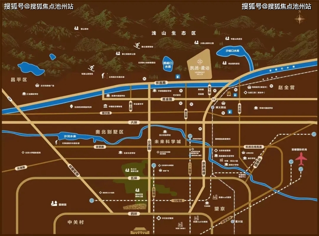 从项目出发5分钟可上京承高速,15分钟可到达未来科学城,半小时畅达城区。此外通过京密引水渠沿线的怀昌路还可连接立汤路,立汤路升级改造工程已作为2021昌平区重点工程,安立路以北至北六环路段将采用高速高架的形式,未来也可在半小时畅达北四环。或可通过昌金路一路向东,到达顺义新城赵全营板块,成熟的生活配套便捷可得。
