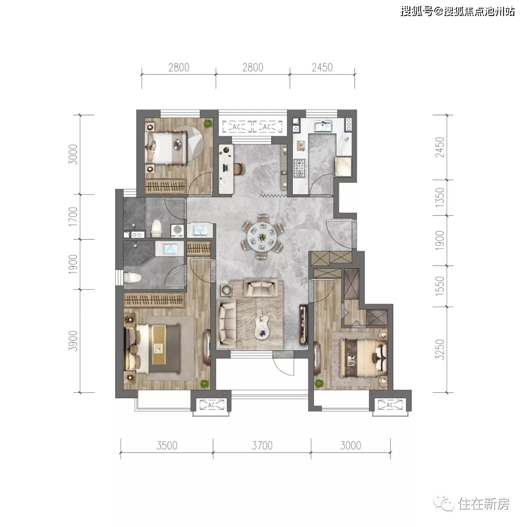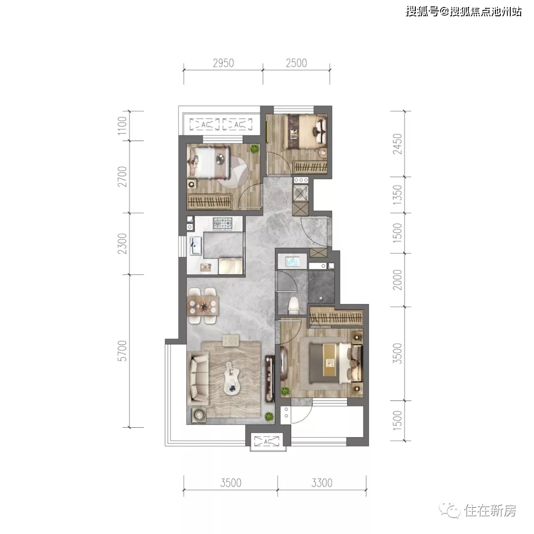 ✔ 价格:两居 三居全普宅