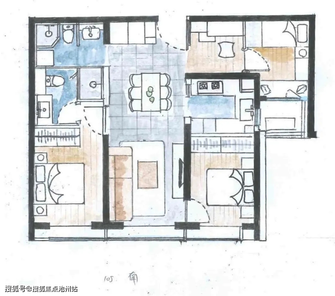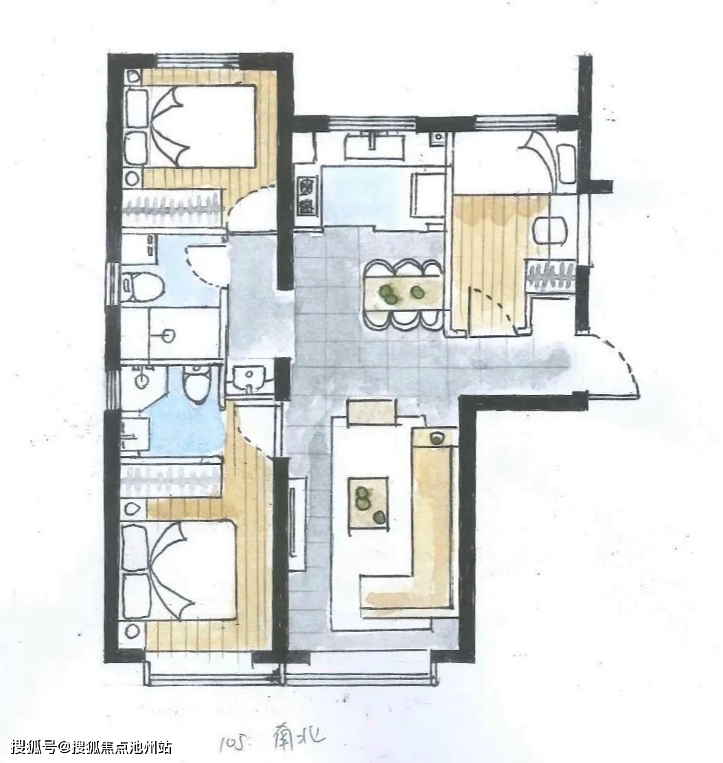 约105平米三居,南北通透,全明设计。主卧套房设计,带一个明卫,餐客厨一体化。这种小三居舒适度比较好,估计也会很抢手。