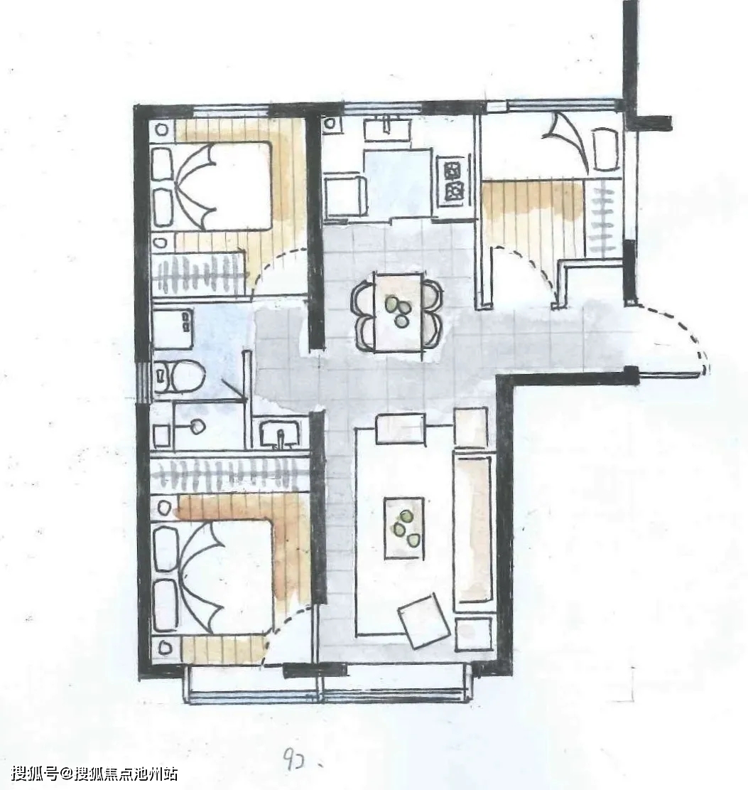 约105平米三居,三面宽朝南,采光非常好。