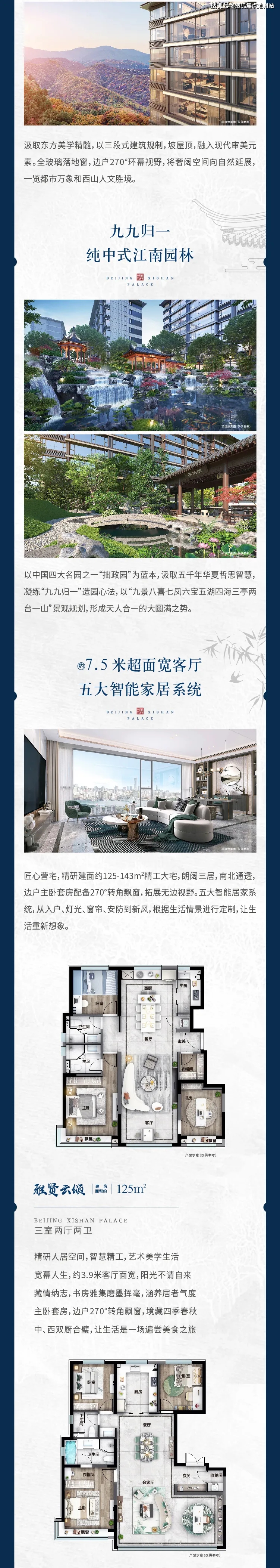 楼盘介绍:佳兆业七载归京之作,携手花样年双百强房企联袂巨献,择址北京主城区,精研府系作品,打造京西中式精工精品西山相府。以”拙政园“为蓝本,开创“九九归一”造园理念。匠筑建面约125-143㎡国风精工大宅,阔朗三居产品即将推出,阔朗三居产品,智慧精工,敬献城市归心之作。