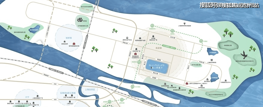 交通【公交】申崇1线、申崇2线、申崇2线区间链接上海市区,申崇6线、东滩1路、东滩2路、东滩3路等链接崇明各镇。 【轨道线】19号线陈家镇站(建设中)。 【自驾】上海绕城高速-沪陕高速-陈家镇出口-陈海公路-北陈公路-雪雁路。