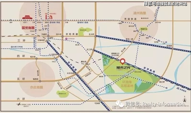 三横三纵平面交通网络;京津高速、京哈高速、京沪高速,五环、六环,通马路,构成全方位立体化密集交通网络。“3+1”TOD轨道交通枢纽;亦庄线、S6线(规划中),17号线(建设中),京津高铁。连接两大机场,联动世界。17号线(建设中)实现项目与中央商务区、亦庄开发区、未来科技城、副中心等多个重要商务区连接;S6线(规划中)连接首都国际机场与第二机场,外部快速联动国内及国际,享世界都市繁华。