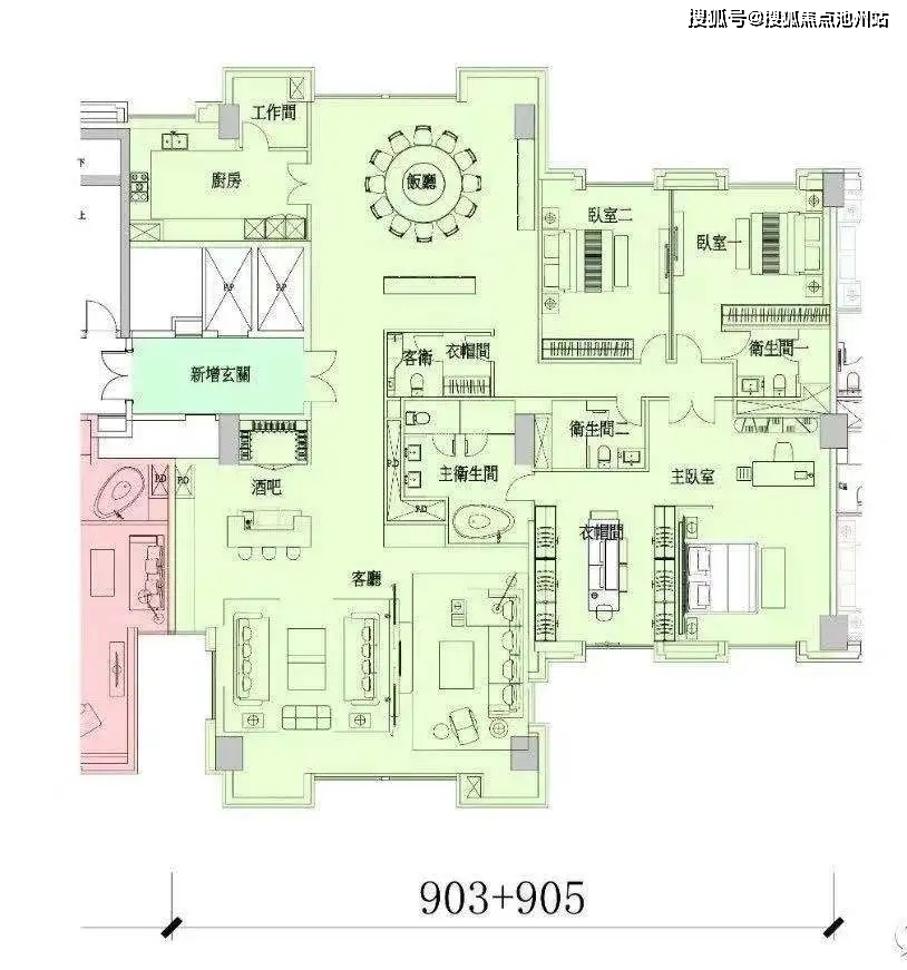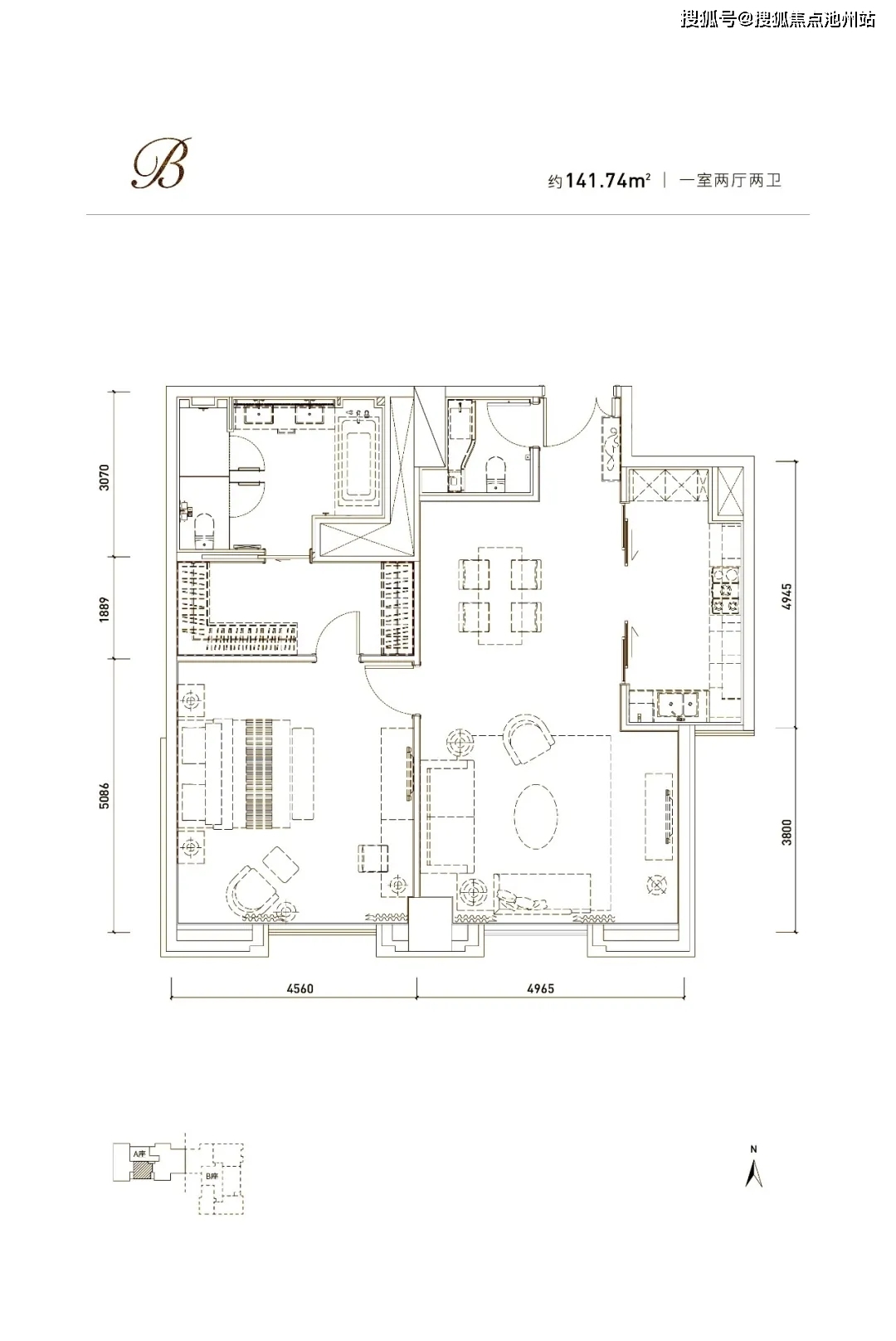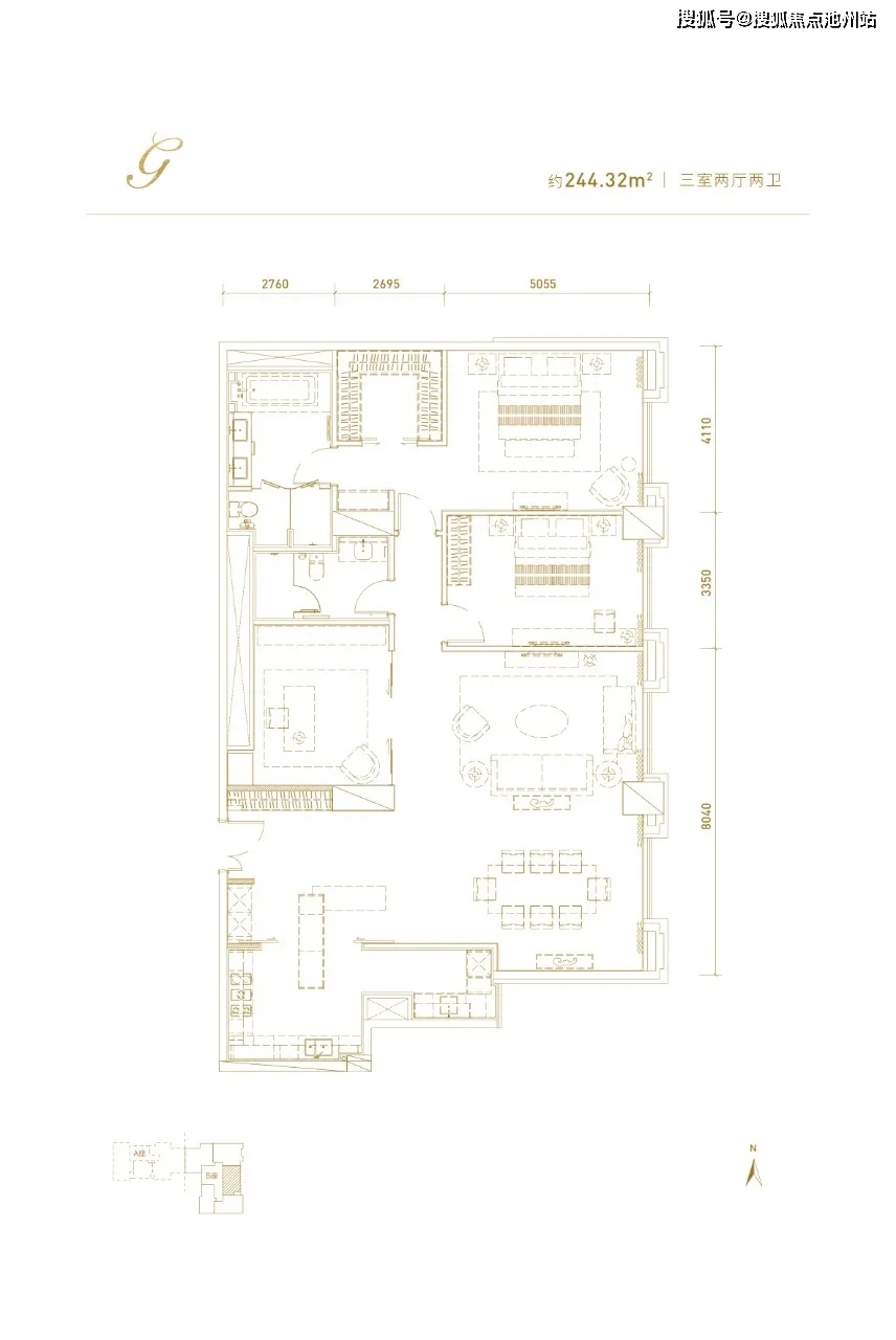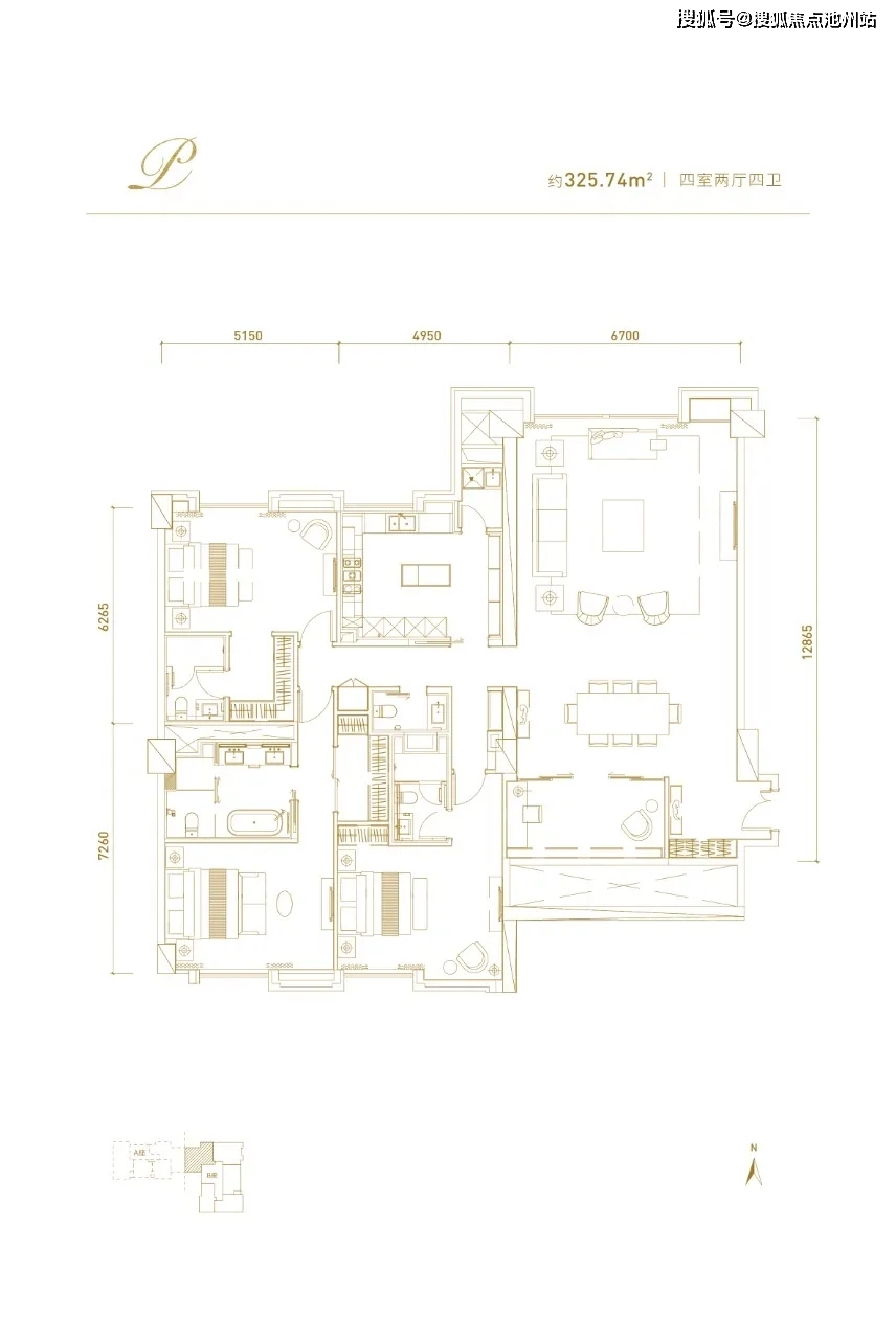 🌵🌵《325㎡户型》:B座 3+1居室 南北朝向 南看长安街 北朝金宝街