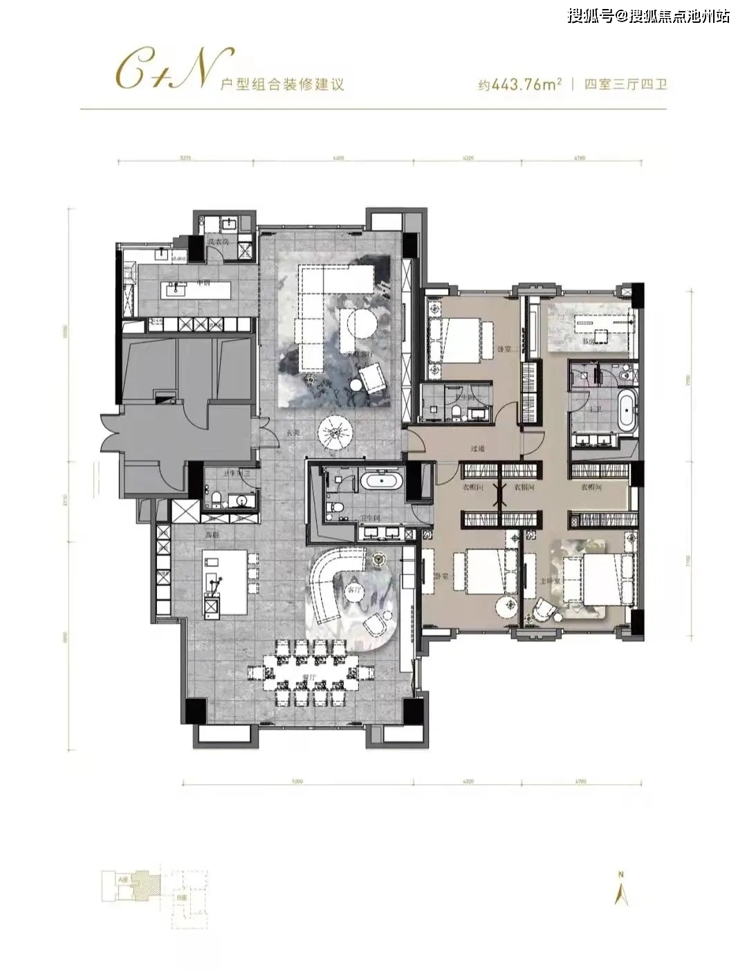 🌵🌵《443㎡户型》:A座 4居室 南北东朝向 南看长安街 北朝金宝街【292平+151平组合,购买需要两资质】
