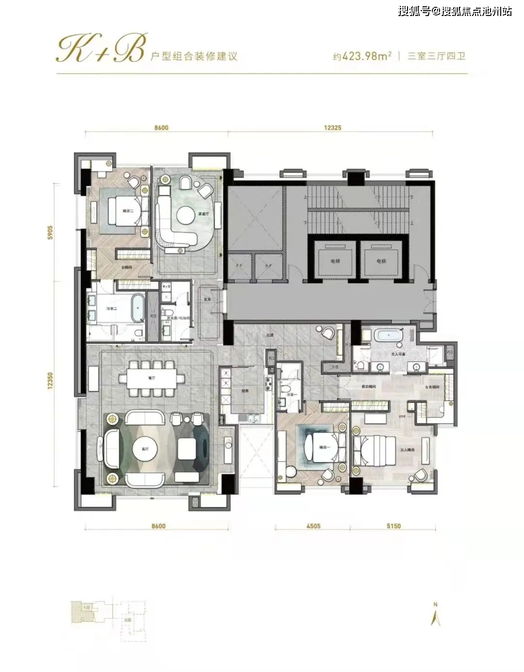 423平 南北 3室3厅4卫(7500-8100)(两个房本格局业主可以随意分割)