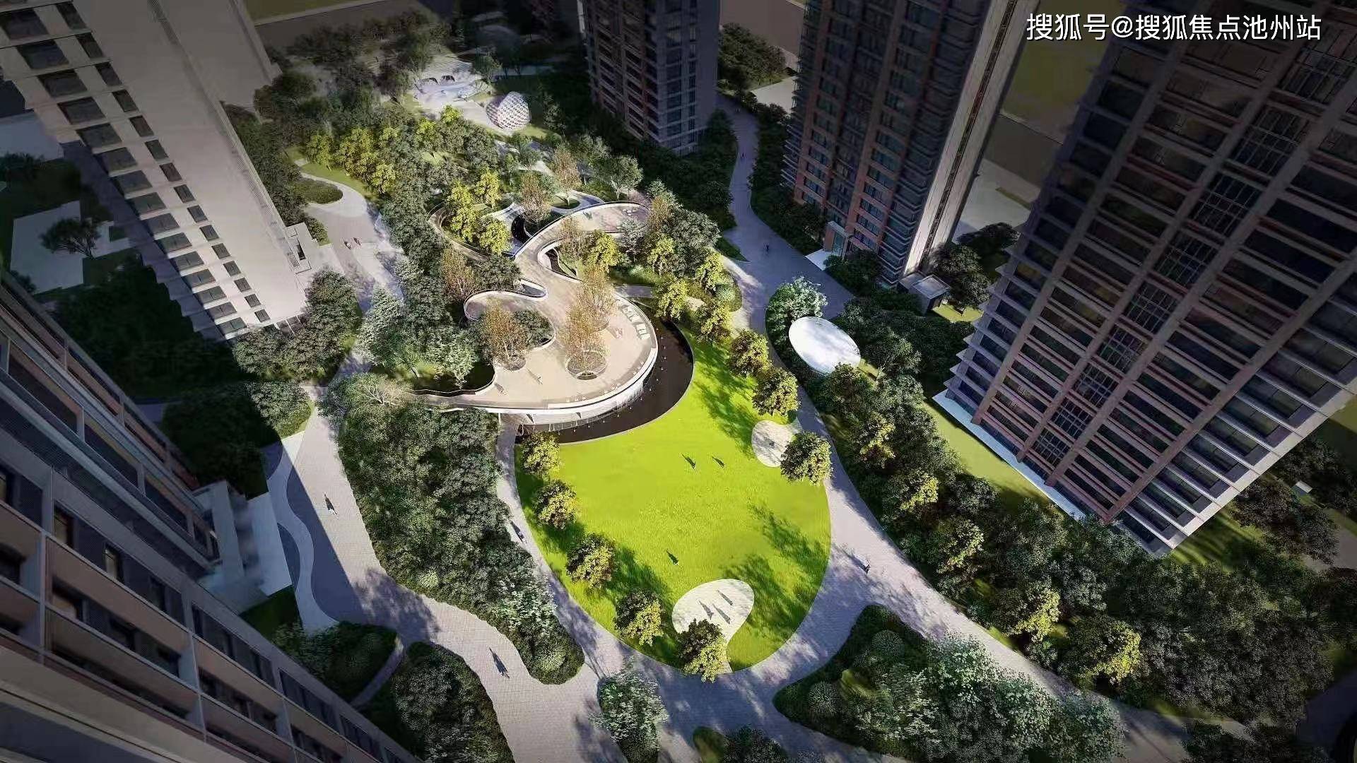 6.园林设计参考纽约中央公园打造外部高纵深围合,内部空间营造的设计理念,打造现代多层次折叠的园区。