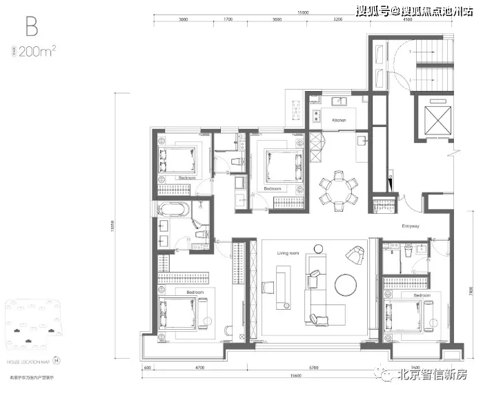 ·200㎡户型:4+1四面宽40平米MAX巨厅,双套房。