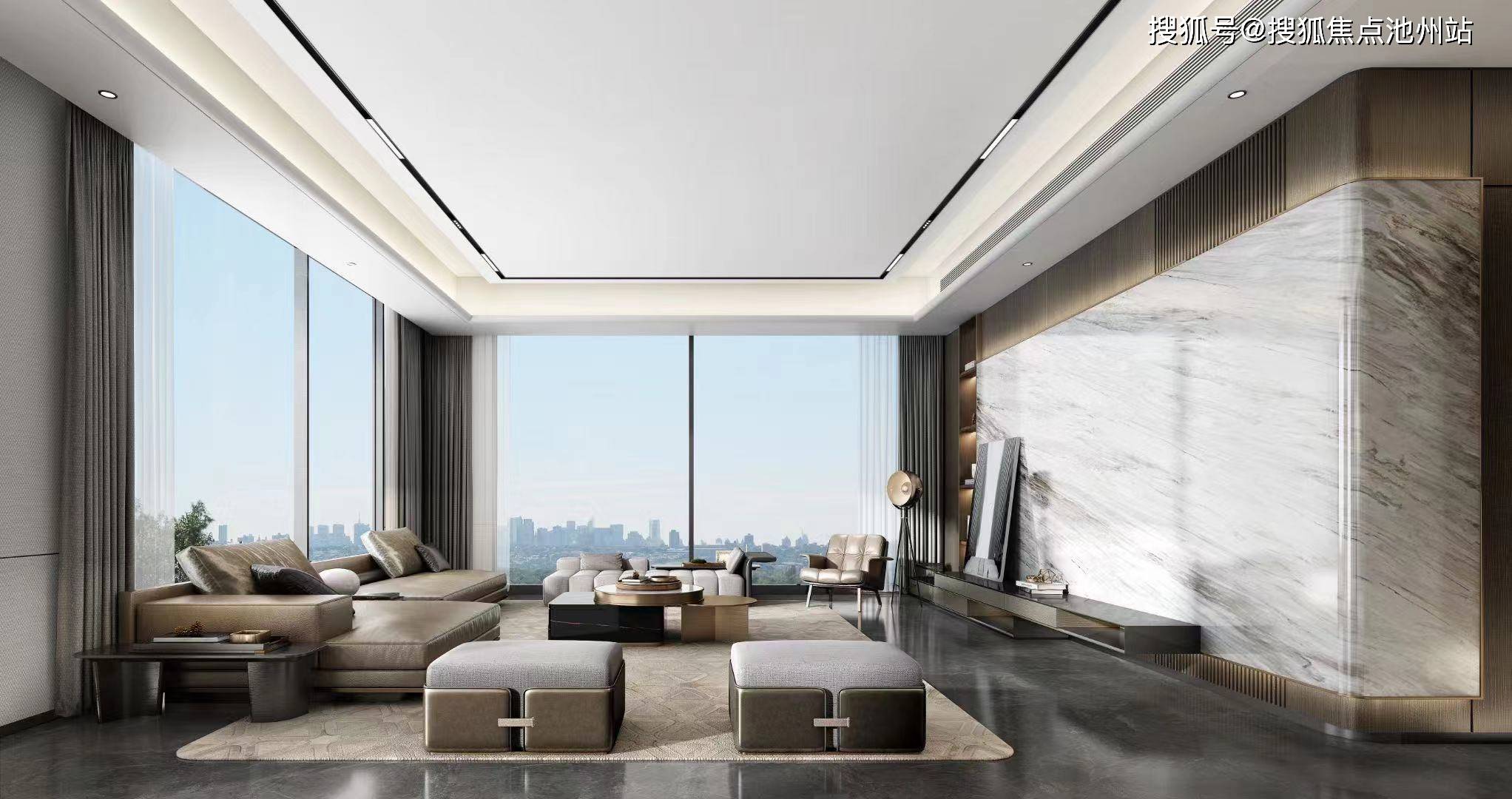 6)国际化大平层建筑标配,全玻璃幕墙+铝板,立面尽展劳斯莱斯极简线条,3.15米顶质层高体验。