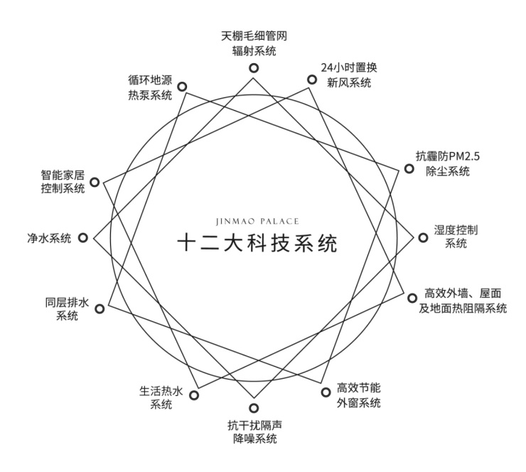 以“科学至上”为宗旨,秉承“品质铸就更美生活”的理念,从“温度、湿度、阳光、空气、声音、水”六大基本生命元素出发,匹配十二大科技系统,为居者提供“绿色健康”的生活解决方案。