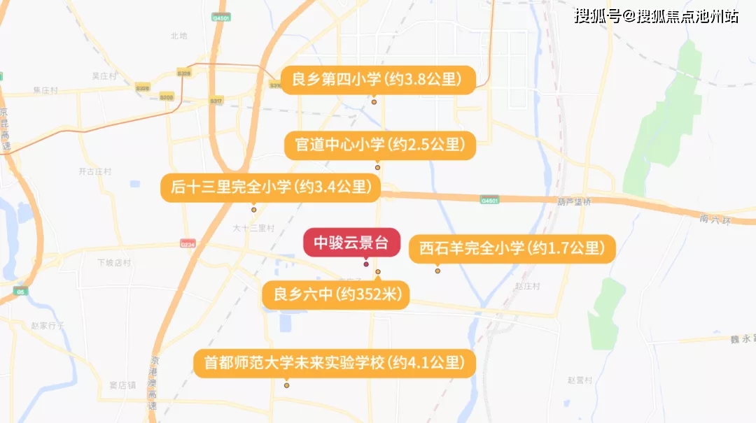 2所中学:良乡六中(约352米)、首都师范大学未来实验学校(约4.1公里)。