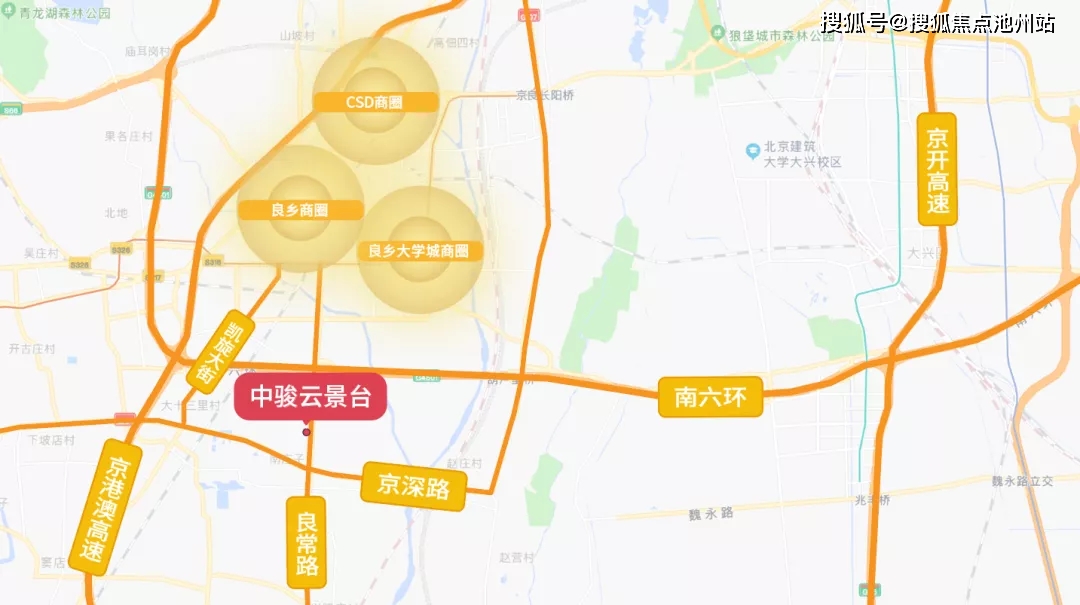 自驾:项目位于南六环,拥有两横四纵的立体交通网络(两横为南六环、京深路,四纵为京港澳高速、凯旋大街、良常路、京开高速)。