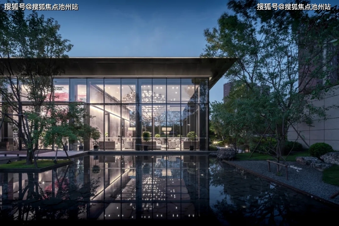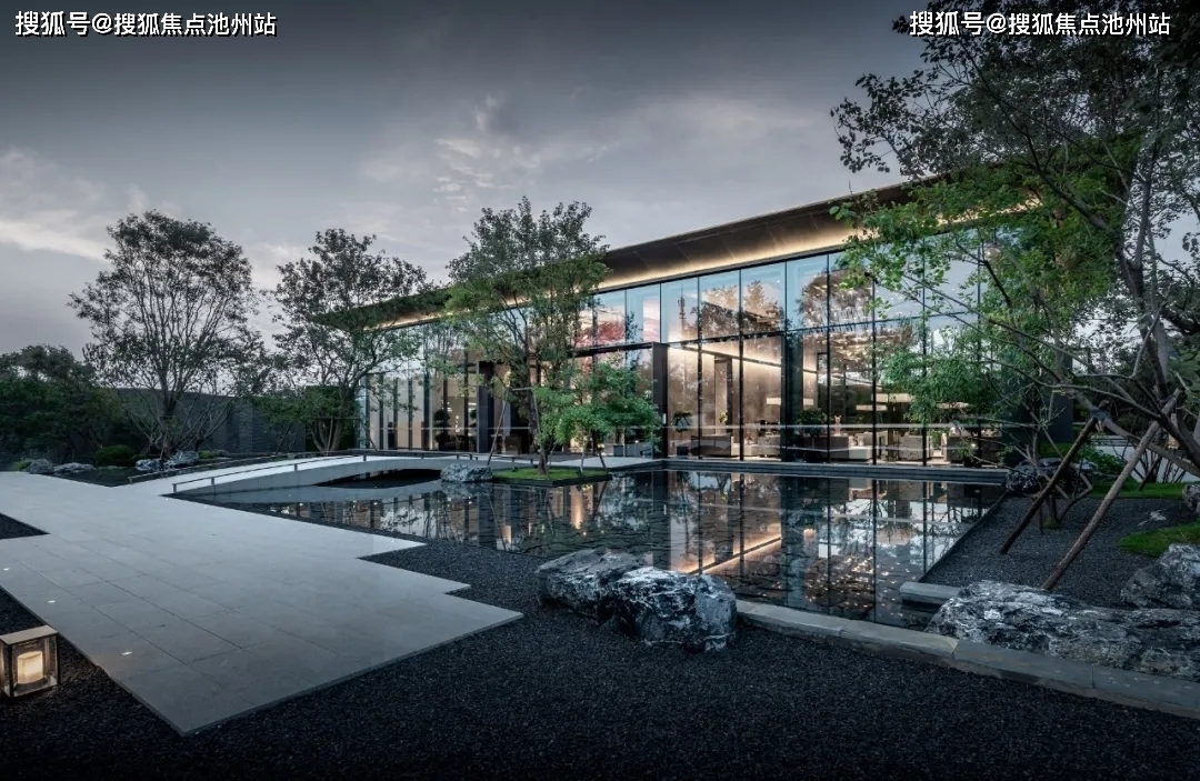 从密林泉涧中拾级而上,豁然开朗,疏林碧波中倒映着期待已久的水晶宫般的售楼处,自然与规则,禅意与现代的融合。