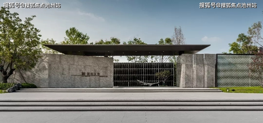 继承东方园林步移景异的特点,入口第二景进行了开敞的迎宾入口的转换对比,两折之后豁然开朗,自然禅意的林侧,轻质的连廊与远处高墙流水山墙若隐若现,形成一幅静谧的山水画卷。