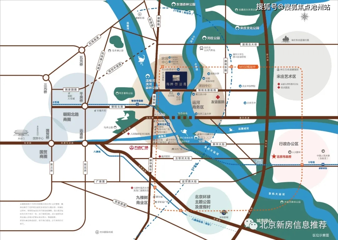 项目位于通州核心—五河交汇处北侧2公里,副中心规划第六组团