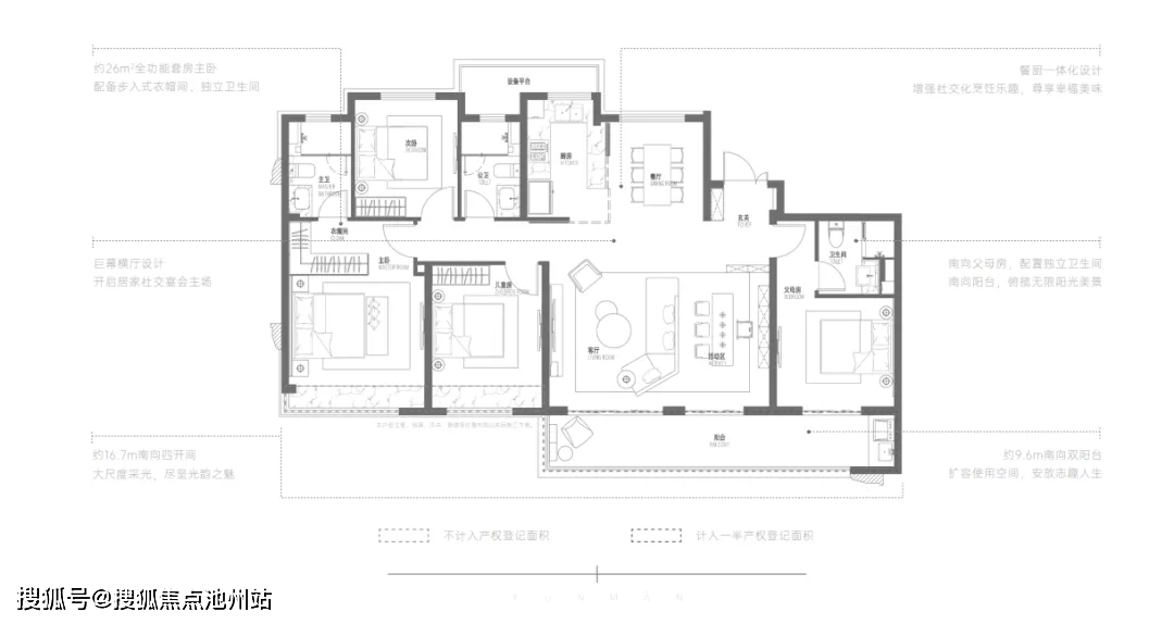 洄游空间、独立玄关、双客厅、多功能厨房餐厅、超大尺度共享式景观与工作阳台……