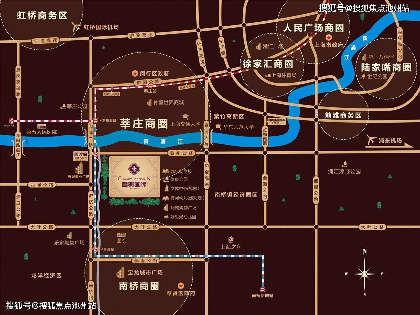 地铁出行:距5号线西渡站,直线距离约800米,3站到达龙湖闵行天街,5站颛桥万达,8站莘庄,便捷换乘1号线至徐家汇及人民广场。
