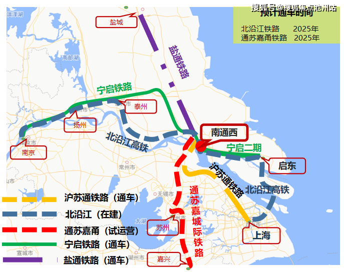 已通车:盐通高铁、沪通铁路,沪苏通铁路1期