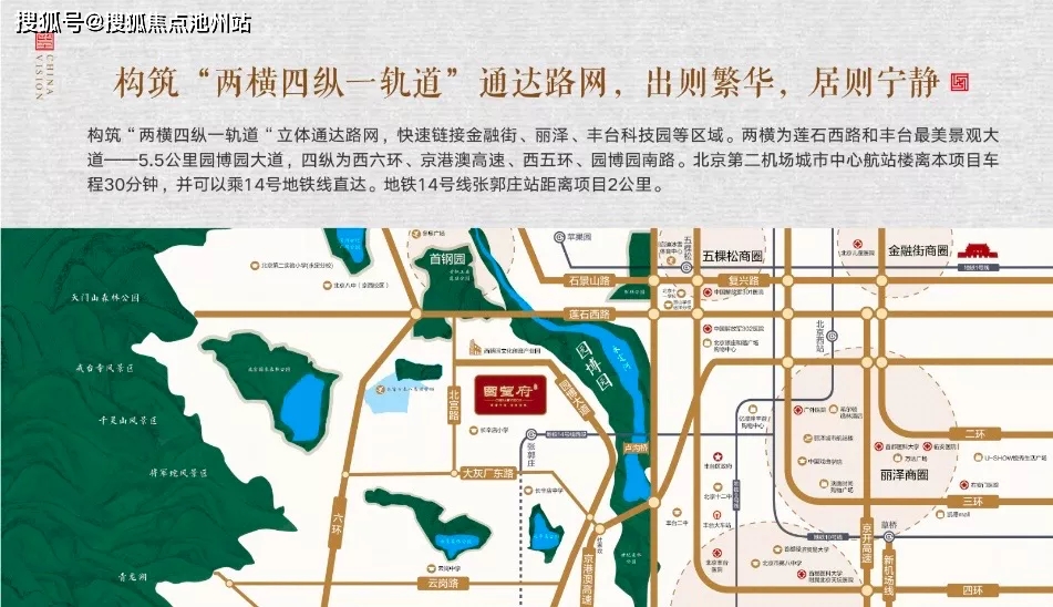交通:两横(园博园南路、莲石路)四纵(西六环、西五环、京港澳、园博大道)一轨道(地铁14号线)