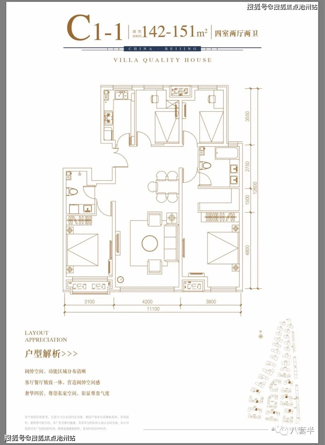 C户型四居室:141平米到152平米(户型为南北朝向)