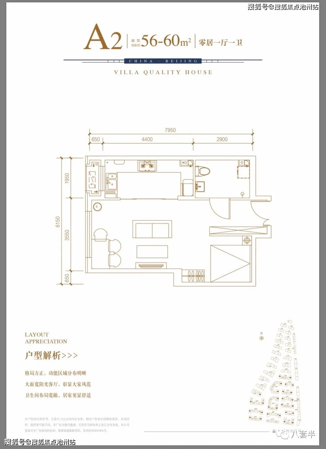 A2户型开间:56平米到60平米(户型为东向或西向)